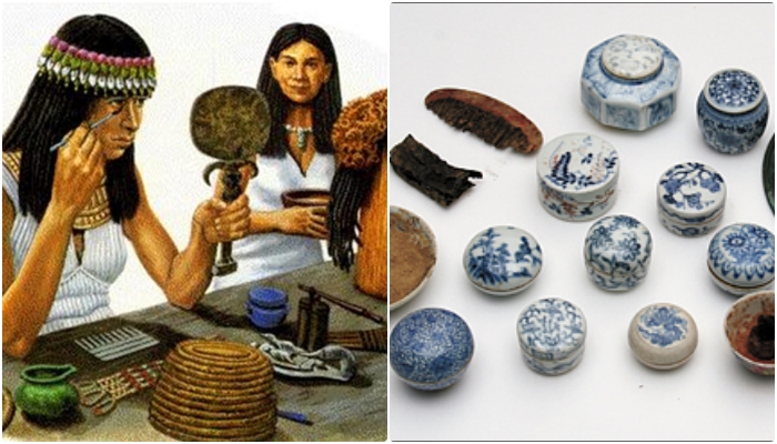문신의 흔적은 고대 시대 발견된 미라 등을 통해 확인된 사실이다. 문신 이외에 얼굴에 바르는 방법으로 채색을 위한 안료를 사용한 것과 태양으로부터 피부를 보호하기 위해 연고 형태를 만들어 발랐다.