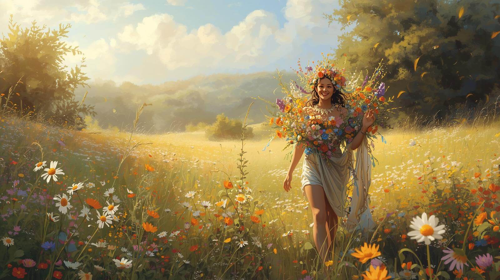 태초에, 세상은 풍요의 여신 데메테르의 축복 아래 있었다. 그녀의 사랑스러운 딸 페르세포네는 대지 위를 거닐며 꽃과 함께 피어나는 봄의 화신과 같았다. 페르세포네는 어머니와 함께 지상의 초원에서 자유롭게 시간을 보냈으며, 이는 데메테르에게 가장 큰 기쁨이었다.