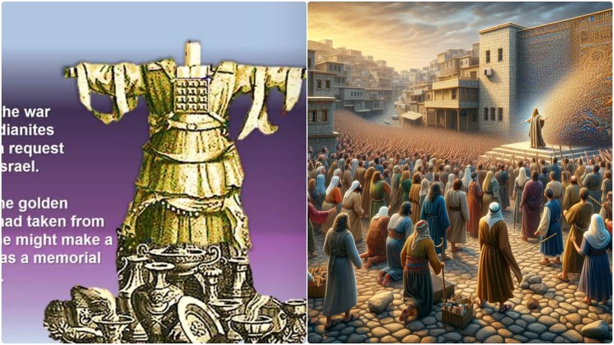 그리고 이제 기드온은 권력의 정점에 오르게 됩니다. 그래서 이스라엘 백성들은 기드온에게 왕이 되어달라고 요청하지만 기드온은 여호와께서 너희를 다스릴 거라고 합니다. 그러나 그는 전리품 중 금 귀고리를 모아 에봇, 즉 제사장 의복 일부를 만들고 그것이 이스라엘에게 수상 숭배의 대상이 되어 올무가 되고 맙니다. 게다가 왕은 되지 않았지만 자그마치 40년 동안 통치를 했습니다.