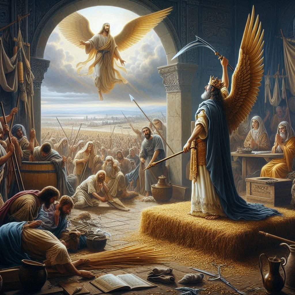 재앙의 정점은 예루살렘 성벽 바로 밖, 여부스 사람 아라우나의 타작마당에서 멈춘다. 다윗은 죽음의 천사가 칼을 멈춘 그 지점에서 제단을 쌓기 위해 아라우나와 협상에 나선다. 아라우나는 모든 것을 무상으로 기증하려 하지만, 다윗은 이를 단호히 거절하고 은 50세겔이라는 정당한 대가를 치르고 땅과 제물을 산다. 이 냉혹하고 철저한 경제적 거래는 이방인의 땅이었던 예루살렘의 특정 지점을 왕실의 합법적 소유지로 확정 짓는 법적 절차였다.