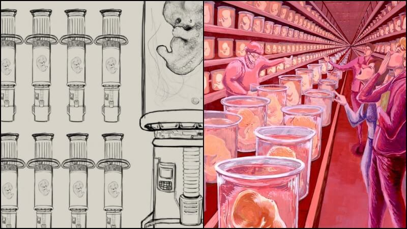 이를 통해 대량 생산된 복제 인간들은 모두 동일한 외모와 지능을 가지며, 마치 공장에서 찍어낸 제품처럼 소위 베이비 공장을 의미합니다.