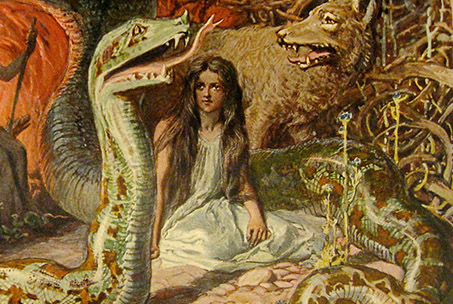 세상의 끝으로 가는 길목에는 현명한 여인으로 칭하는 거인 앙그르보다가 묻힌 무덤이 있다. 그 길 동쪽 끝으로 죽음의 세계가 나오는데 오딘은 앙그르보다 무덤 앞에서 룬 문자로 주문을 외우며 망자를 깨웠다. 자신을 방랑자라고 소개하고 발데르의 앞날을 물었다. 그러자 망자는 발데르는 헬에 머물 것이고 죽은 자들의 세계에서는 이미 발데르를 맞이하기 위해 꿀술을 담가두었다고 하였다 그러더니 오딘의 정체를 알고 있다며 머지않아 로키가 족쇄를 풀고 신들을 파멸시키고 자신 곁으로 올 거라고 하였다.