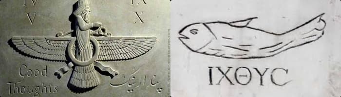 태양 혹은 빛을 숭배하는 조로아스터교와 달리 빛에서 나와 어둠을 분리하고 물을 가르고 물 위와 물 아래를 가로지르고 물을 모으고 물속의 생명을 번성하게 하는 등 쉴 새 없이 물에 관한 이야기가 나옵니다. 게다가 조로아스터교의 상징이 마치 큰 날개 날린 독수리 형상이라면 기독교는 물고기인 것으로 봐서 의도적으로 그리 설정한 것은 아닌가 싶기도 하고요. 물론 별자리에 준한 물고기자리 시대여서 그런 것인지도 모르겠고요. 또한, 창조주가 주체라면 물고기자리도 창조주가 의도한 것이 맞을 테고요.