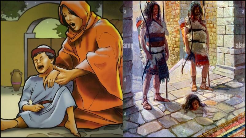5. Now the sons of Rimmon the Beerothite, Rechab and Baanah, set out, and about the heat of the day they came to the house of Ish-bosheth as he was taking his noonday rest. 6. And they came into the midst of the house as if to get wheat, and they stabbed him in the stomach. Then Rechab and Baanah his brother escaped. 7 When they came into the house, as he lay on his bed in his bedroom, they struck him and put him to death and beheaded him. They took his head and went by the the way of the Arabah all night. 8 and brought the head of Ish-bosheth to David at Hebron. And they said to the king. "Here is the head of Ish-bosheth, the son of Saul and on his offspring."
