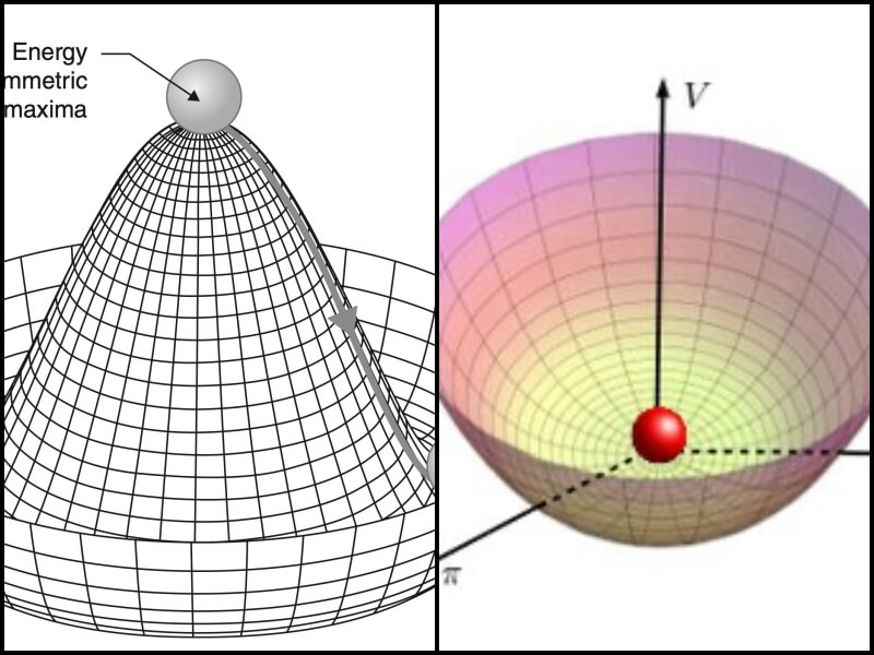 대칭 붕괴는 시스템이 고에너니 상태에서 대칭을 가지다가 에너지가 낮아지면서 대칭이 깨지고 특정한 상태를 선택하는 현상입니다. 그러니까 높은 에너지에서는 모든 방향에서 동일한 성질을 가지지만 에너지가 낮아지면 특정 방향이나 상태가 선호됩니다. 이러한 대칭 붕괴의 종류로는 자발적, 유효적으로 나뉠 수 있는데 제가 이해할 수 있는 영역이 아닌 것 같아서 패스하겠습니다. 그냥 그런게 있다는 정도로 알고 있으려고요.