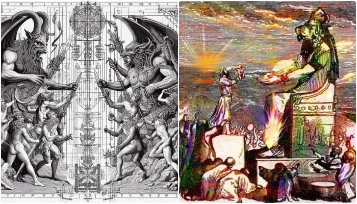 가나안 사람들은 이 끔찍한 일이 일어나는 동안 피리를 불고 북을 치며 아이의 울음소리를 희석시켰습니다. 이러한 미개한 관습과 종교 아래 신흥 종교가 나타나면서 이런 짓을 못하게 금지한 게 아닌가 싶기도 합니다. 과거에 어떤 일이 있었고 불가사의한 어떤 존재가 있었는지는 모르겠지만요.