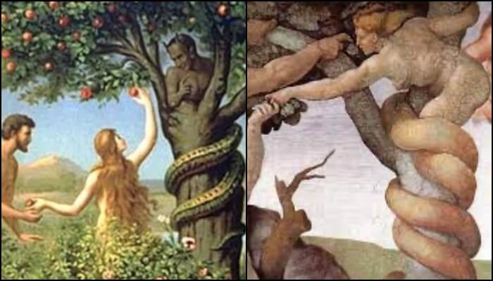 그러나 비교적 어여쁘게 생긴 2호가 만들어지자 뱀은 그녀에게 호감을 느끼기 시작한다. 그래서 자신이 먹고 좋았던 선악과와 생명수를 그녀에게도 권해주고 싶었다. 인간 2호는 뱀이 시키는 대로 선악과를 먹었고 자신이 좋아하는 인간 1호에게도 권했다. 그리고 쾌락을 알아버린 인간들을 본 령은 노여움이 극에 달했다. 령은 인간들이 개인의 즐거움을 만끽하는 것을 원치 않았다. 바쁜 일거리를 내팽개치고 밤낮을 가리지 않고 해 대는 통에 저러다 생명수까지 먹고 영생을 누리면 어쩌나 싶어 에덴 실험실에서 쫓아내기로 한다. 인간 1, 2호가 에덴을 쫓아내고 고생길이 열리자 뱀도 허망했다. 령에게 욕을 진탕 먹긴 했지만 령에게 뱀 따위는 쓸모가 없었다. 더군다나 뱀은 지독히도 말을 듣지 않았다. 인간들도 뱀을 좋아할 리 없었다. 모든 일은 뱀 때문에 이루어진 일이기 때문이다. 뱀은 자신을 싫어하는 인간 2호에게 증오의 감정을 키웠다. 그래서 그녀를 지구 끝까지 쫓아가 괴롭히겠노라고 다짐하며 그녀 주변에서 평생을 얼쩡거리며 틈만 나면 물어 죽일 생각을 한다.