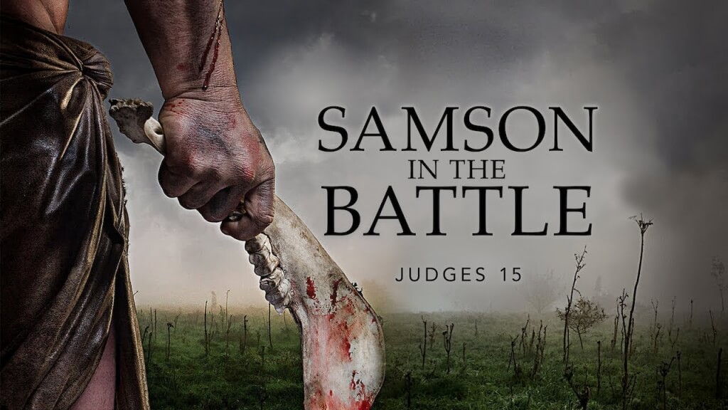 14 When he came to Lehi, the Philistines came shouting to meet him. Then the Spirit of the Lord rushed upon him, and the ropes that were on his arms became as flax that has caught fire, and his bonds melted off his hands. 15 And he found a fresh jawbone of a donkey, and put out his hand and took it, and with it he struck 1,000 men. 16 And Samson said, "With the jawbone of a donkey, heaps upon heaps, with the jawbone of a donkey have I struck down a thousand men."