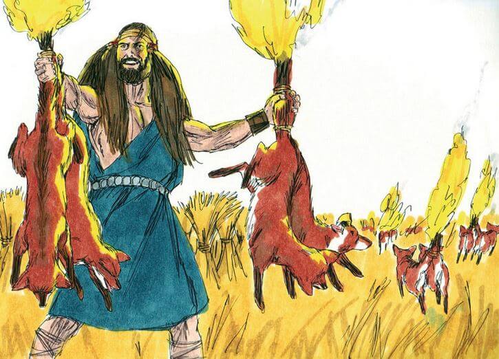 삼손은 여우 300마리를 잡아 꼬리를 묶고 그 사이에 횃불을 넣어 블레셋 사람들의 밭, 포도원, 감람나무밭을 모두 불태워 버립니다. 그 때문에 블레셋의 경제에 큰 영향을 미쳤다고 합니다.