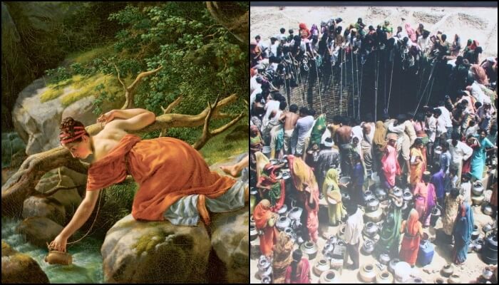 광야 쉬르로 가는 샘물 근처에서 천사는 하갈을 보고 어디서부터 왔고 어디로 가느냐고 묻습니다. 그러나 하갈은 자신의 주인 사라로부터 도망치는 중이라고 말합니다.