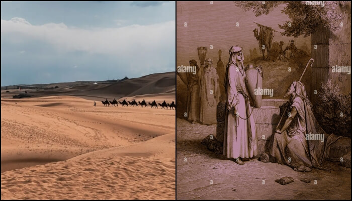 아브라함의 비서가 그녀를 발견하고 물을 달라고 요청하니 재빨리 마시라고 권합니다. 그러더니 낙타에게도 물을 주어 물항아리가 비어버리게 됩니다. 완전 딱 이삭의 신붓감을 제대로 찾은 셈이네요.
