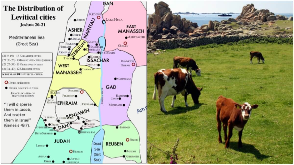 1. Then the heads of the fthers' houses of the Levites came to Eleazar the priest and to Joshua the son of Nun and to the heads of the fathers' houses of the tribes of the people of Israel. 2 And they said to them at Shiloh in the land of Canaan, "The Lord commanded through MOses that we be given cities to dwell in, along with their pasture lands for our livestock." 3 So by command of the Lord the people of Israel gave to the Levites the following cities and pasture lands out of their inheritance.