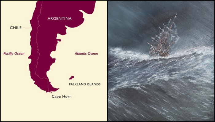 그림에 관하여 지역 터줏대감같은 노인들과도 얘기를 많이 나눴던 모양입니다. 그래서 최종적으로 그림에 대한 총평을 하였는데요. 케이프 호너에서 허리케인을 만나 배가 아작이 난 상태처럼 보인다고 하는 것 같은데요. 케이프 호너는 남아메리카의 푸에고 아레나스 산맥과 아이스랜드 사이에 위치한 곶으로 뿔 모양이어서 케이프 호너라고 지은 것 같습니다. 그리고 이 지역은 보기에도 위태로워 보이는 것처럼 세계에서 가장 위험하고 난해한 항해 중 하나로 알려져 있는 곳이라고 합니다. 그런 곳에서 허리케인을 만났다면 정말 아찔하겠네요.
