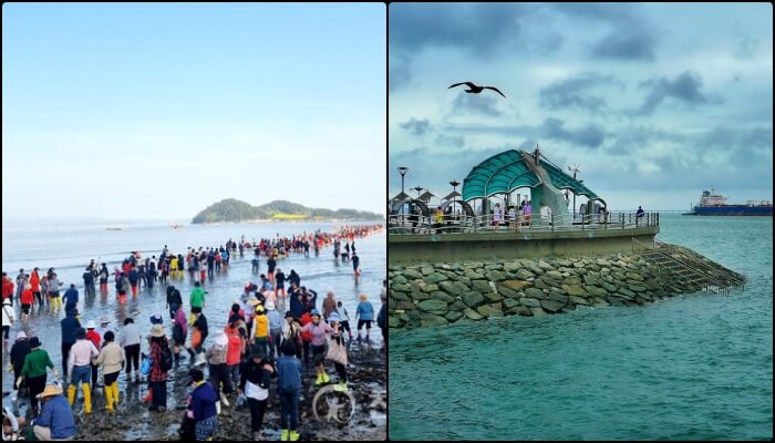바다를 보기 위해 몰려온 사람들