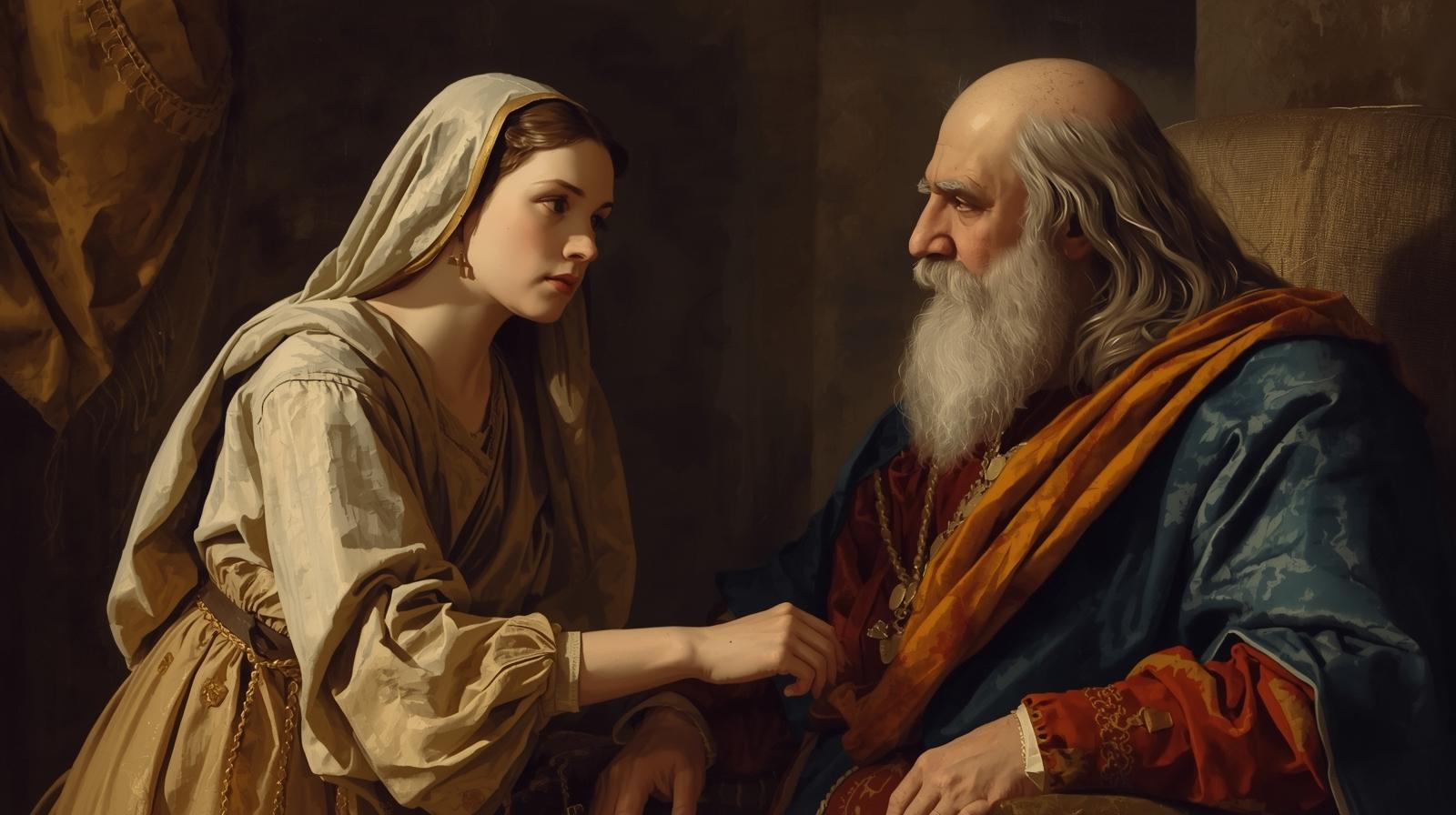 1.Now King David was old an advanced in years. And although they covered him with clothes, he could not get warm. 2. Therefore his servants said to him, "Let a young woman be sought for my lord the king, and let her wait on the king and be in his service. Let her lie in your arms, that my lord the king may be warm." 3. So they sought for a beautiful young woman throughout all the territory of Israel, and found Abishag the Shunammite, and brought her to the king. 4. The young woman was very beautiful, and she was of service to the king and attended to him, but the king knew her not.